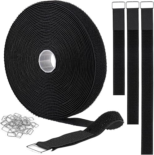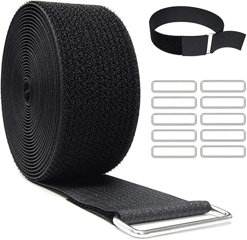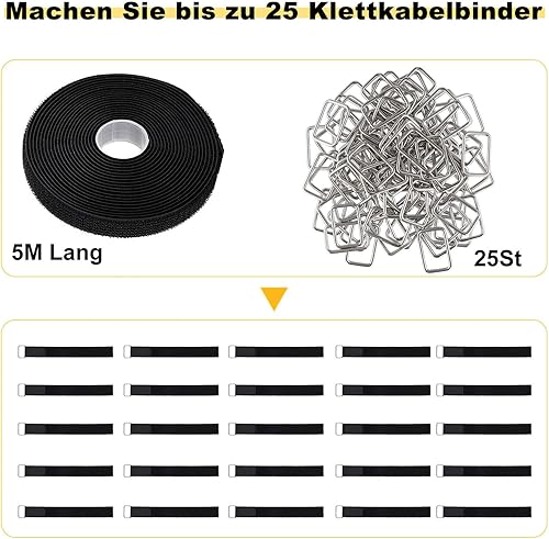 YMCRLUX 5m Klettband mit 25 Metallschnalle, Frei Zuschneidbar Klettverschluss Band - 2cm Breit, Wiederverschließbar Klett Kabelbinder zum Organisieren Ihrer Kabel, Schnüre, Schläuche usw
