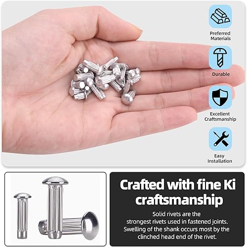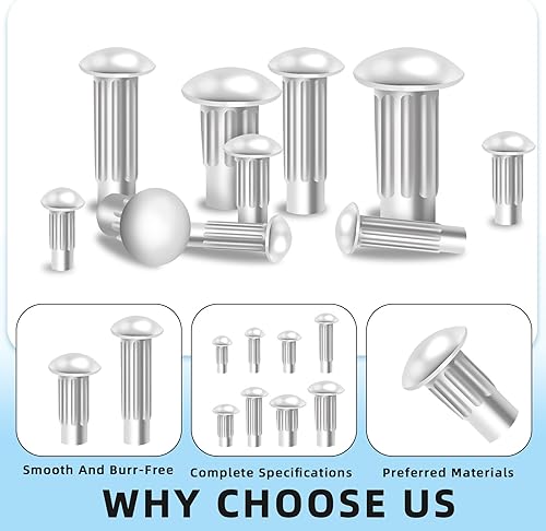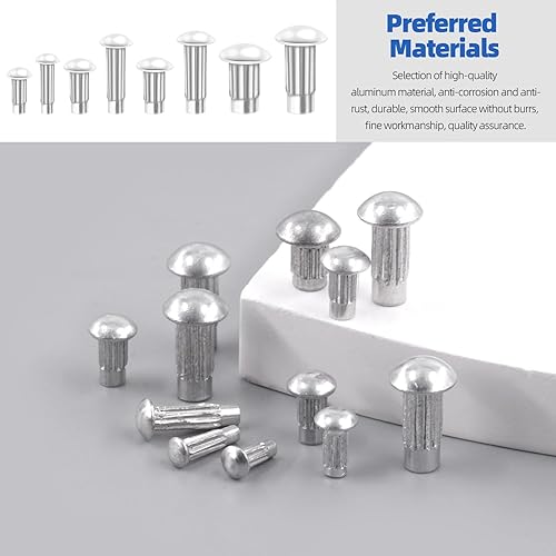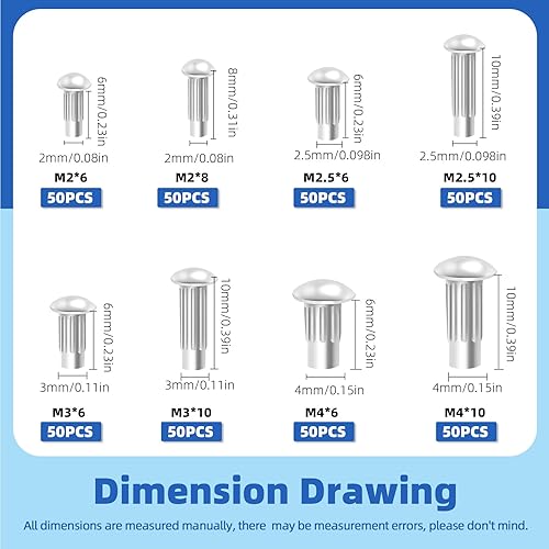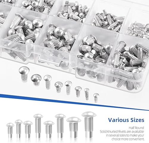 Glarks 400Pcs Solid Nieten Knulled Shanks Set, M2 M2.5 M3 M4 Halbrunder Kopf Aluminium Solid Nieten Sortiment Kit mit Aufbewahrungsbox Home Outdoor Hardware Tool