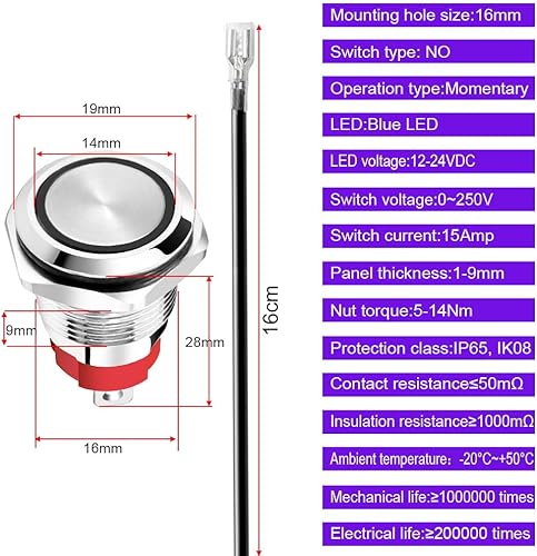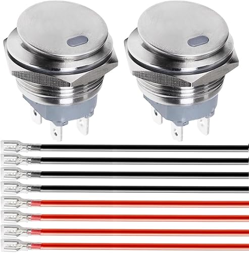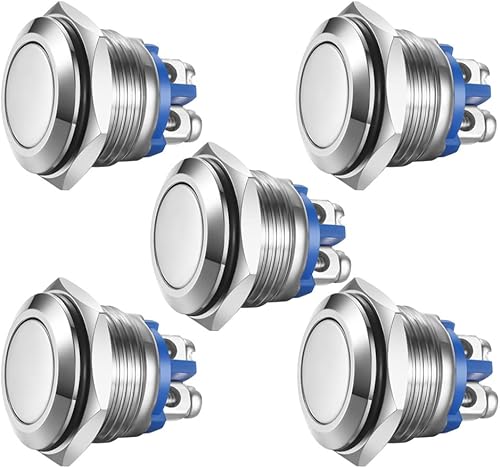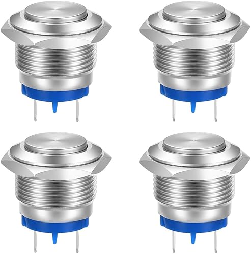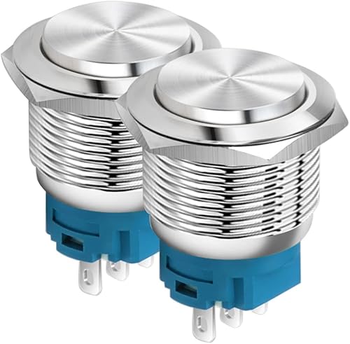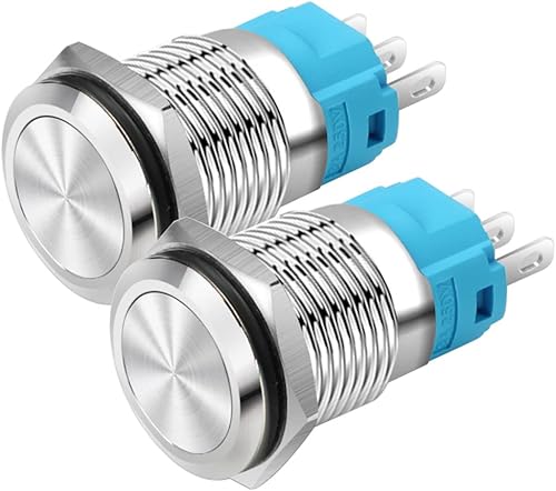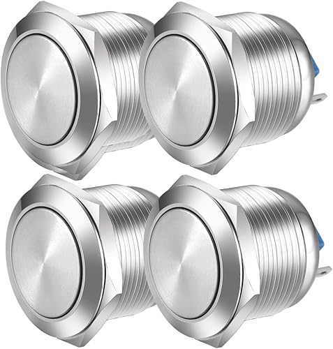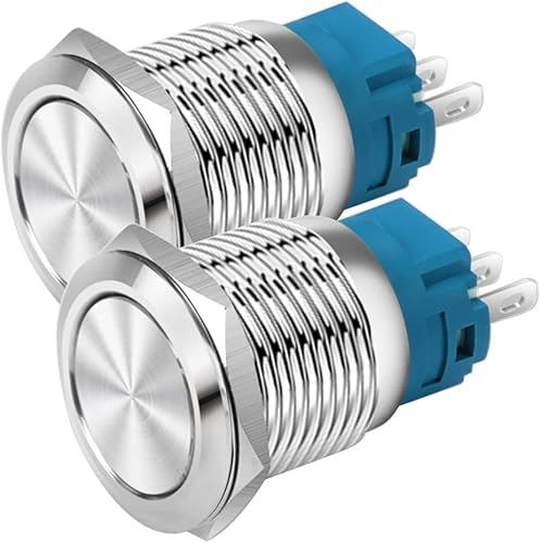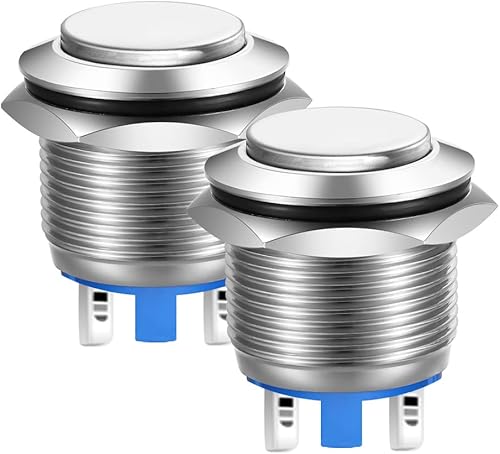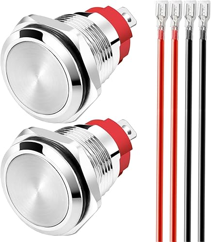 Gebildet 22mm Hoher Kopf SPST Momentaner Drucktaster Wasserdicht, Selbstrückstellender Edelstahl Drucktaster, Lötstiftanschlüsse DC 6V/12V/36V/48V, AC 110V/230V 3A, 1NO