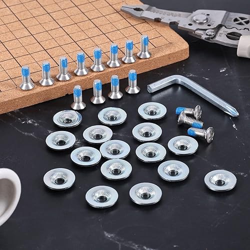 16stk Schraubenset für Snowboardbindungen, Einschließlich Bindungsschrauben Snowboard aus Edelstahl und Rutschfesten Unterlegscheiben mit Schraubendreher für Zubehör für Snowboardbindungen