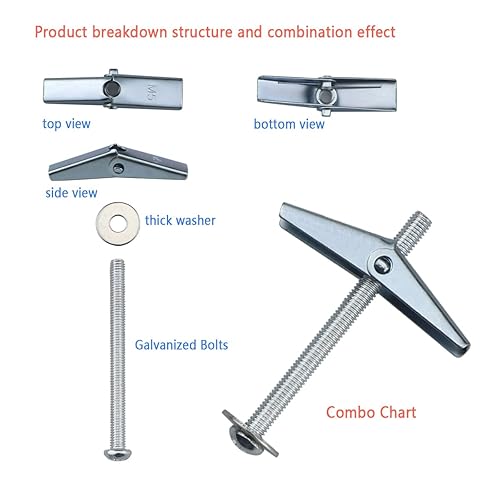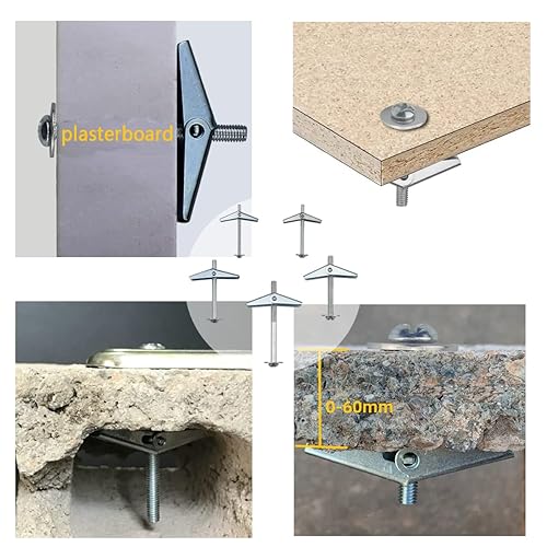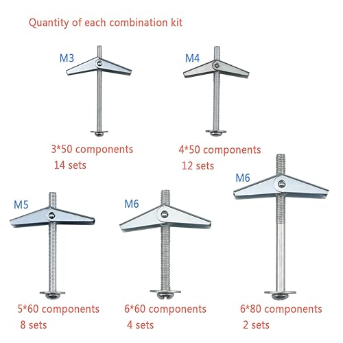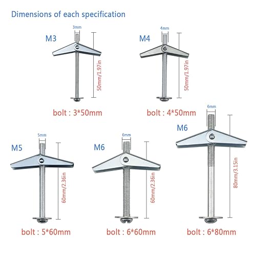 Kippdübel 40 Sätze(120 Stück), Klappdübel Und Spreizdübel(M3/M4/M5/M6),Sortierte Federklappdübel Für Gipskarton, Hohlraumwände, Rigipsdübel, Trockenbau, Faserplatten(50/60/80mm)