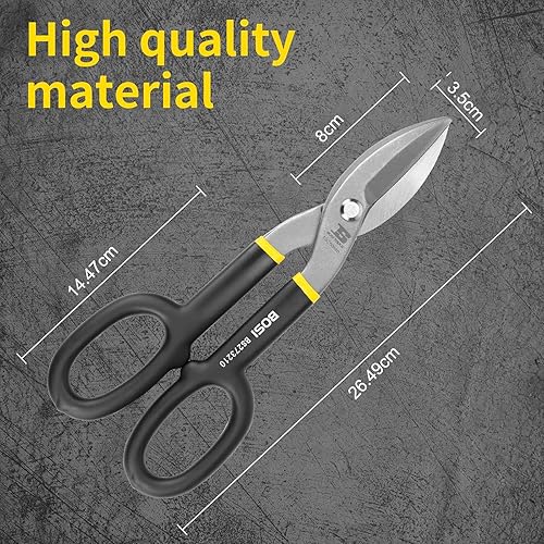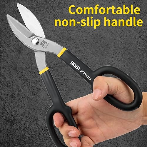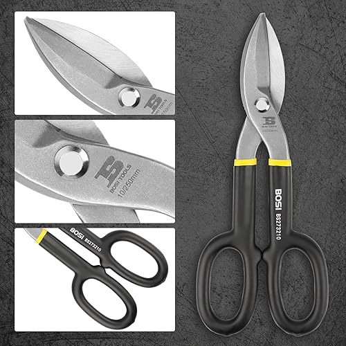 B BOSI TOOLS Blechschere, 250mm Metallschere, Hochfester geschmiedeter und wärmebehandelter Kohlenstoffstahl mit komfortablem schwarzem Gummigriff