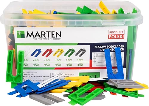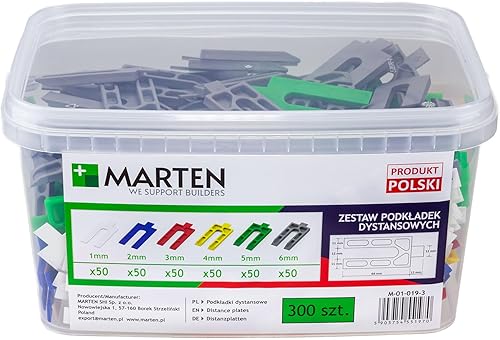 MARTEN Kunststoff-Set, 144/288 / 300-teilig, 1-6 mm, in verschiedenen Farben – Robuste Distanzplatten für Fenster- und Türenmontage, Trockenbau und Terrassenbau (SET 1-6mm, 300 Stück)