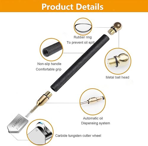 Glasschneider für 2-20mm Dickes Glas Fliesen Spiegel Mosaik Schneiden, Glasschneider Fensterglas Fliesenschneider mit 3 Hartmetall-Schneidköpfen