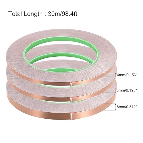 sourcing map 2 Stk. Doppelseitig leitfähig Klebeband Kupferfolienband 4mm/5mm/8mmx30m/98.4ft für Gitarre, EMI Shielding Crafts, elektrische Reparaturen
