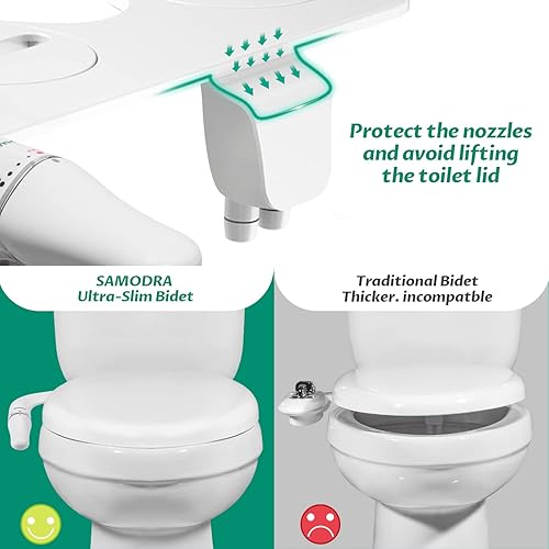 SAMODRA Bidet Aufsatz,Ultra-Slim Nicht Elektrisch Bidet Einsatz Für Toilette mit,Doppel Düsen Bidet Toilettenaufsatz,Spart Papier,Einfache Kontrolle WC-Aufsatz,Po-Dusche, Taharet,Weiß