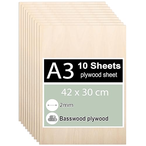 12 Stück Sperrholzplatte 2mm, A4 Sperrholz 30 x 21 cm, Linde Sperrholz, Dünne Holz-Zuschnitte, Holzplatten für für DIY Holzarbeiten, Laserbearbeitung, Brandmalerei, Modellbau, Deko, Gemälde