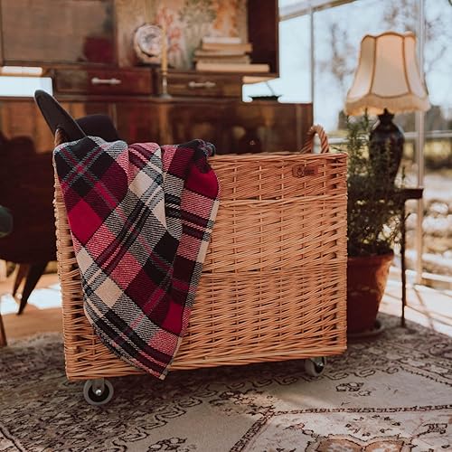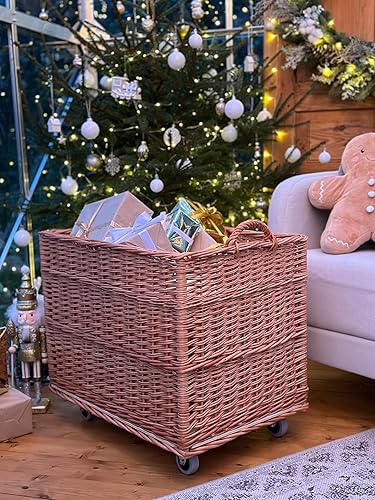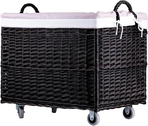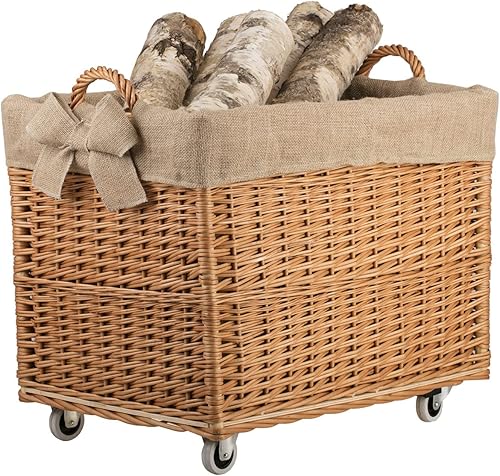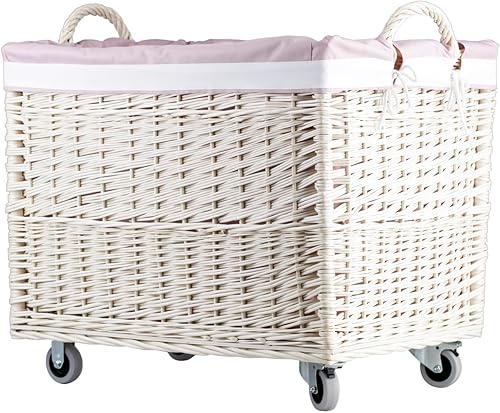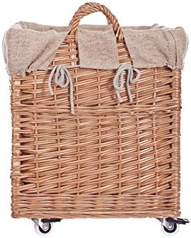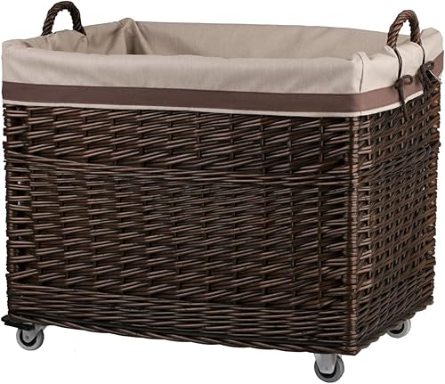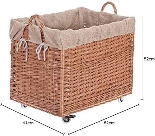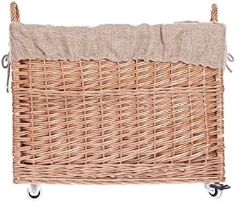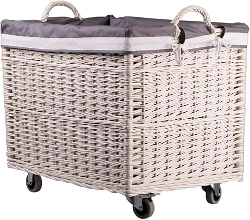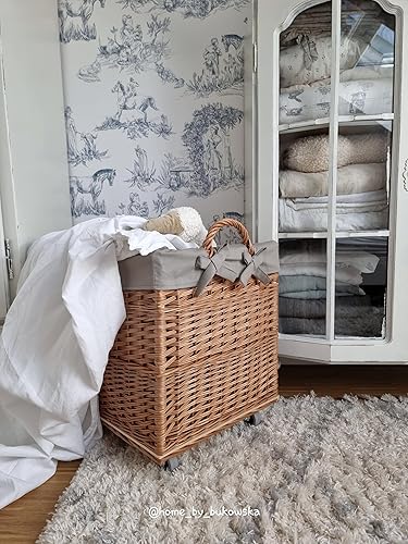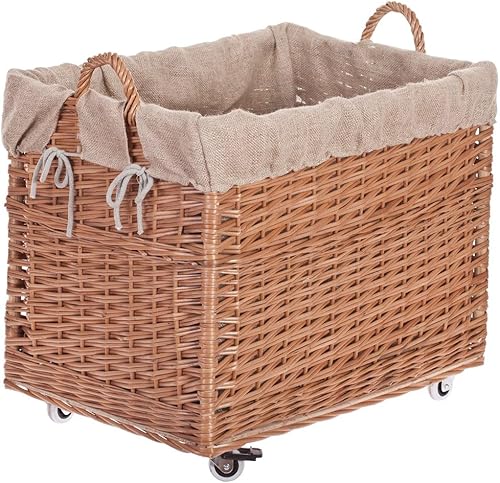 e-wicker24 Alles aus Weide Aufbewahrungskiste aus Weidengeflecht, naturfarben, rechteckiger Wäschekorb aus Weide, mit Rollen und Futter aus grauem Jute-Stoff