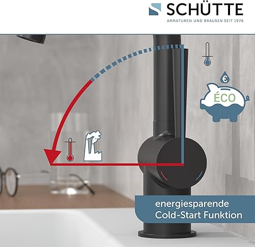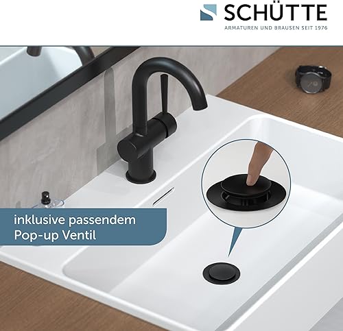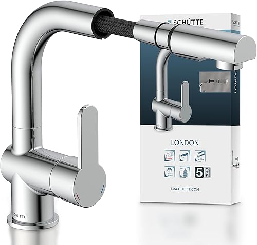 SCHÜTTE 79710 LONDON Wasserhahn fürs Bad, Waschtischarmatur mit herausziehbarer Brause, Haarbrause, ideal zum Haarewaschen, Einhebelmischer mit Ablaufgarnitur in Chrom