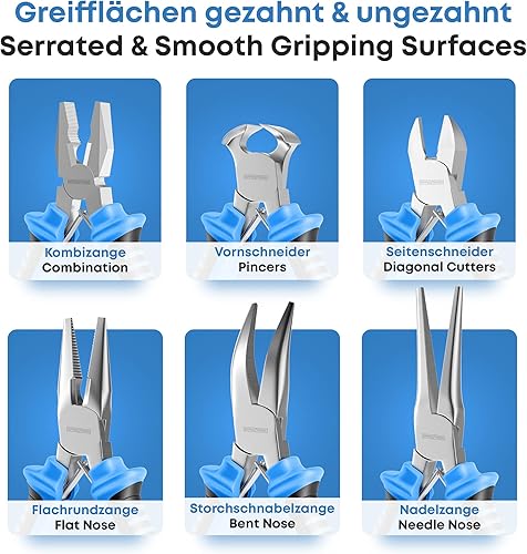 Effektwerk 6-teiliges Mini-Zangenset, Linesman-Zange, Lange Nase, Nadelzange, Gebogen, Drahtschneider und Seitenschneider, Werkzeugsatz für elektronische Reparaturen