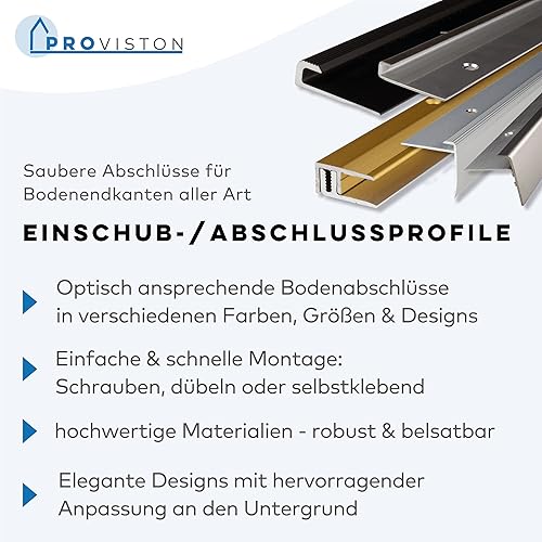 PROVISTON | Abschlussprofil | Aluminium eloxiert | Bronze Hell | Breite 21 mm | Höhe 7-15 mm | Länge 1000 mm | Gebohrt | Einfassprofil | Einschubprofil | Abschlussleiste | Bodenprofil | 1 Stück
