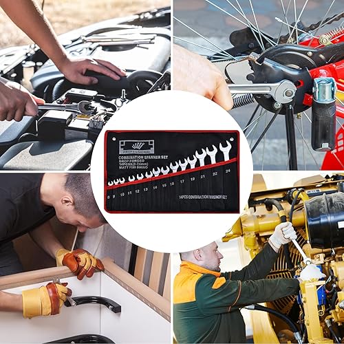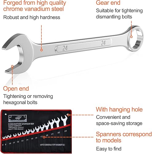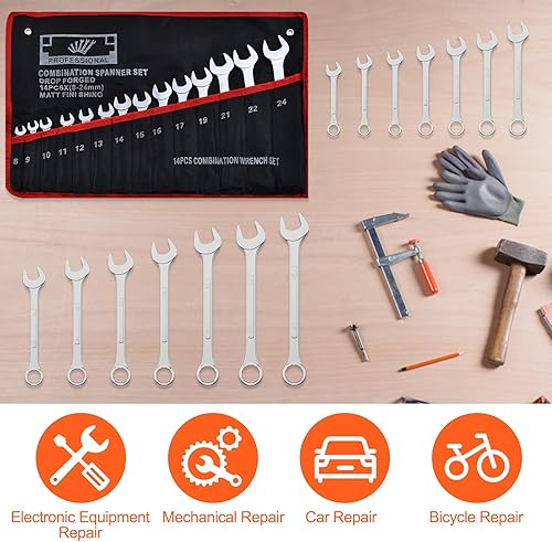 Mesybveo 14 Stück Ratschenschlüssel Set, 8-24 mm Ring Gabelschlüssel Ringmaulschlüssel Satz aus Chrom-Vanadium-Stahlin, in Rolltasche, Schraubenschlüssel mit 12 Zähnen zum Befestigung und Demontage