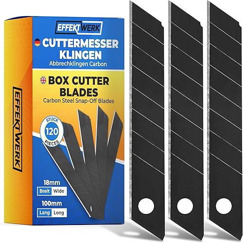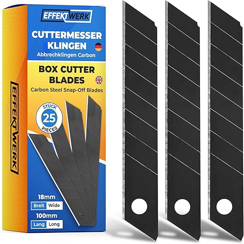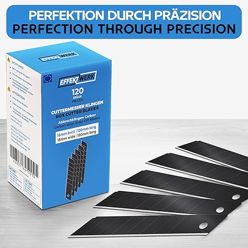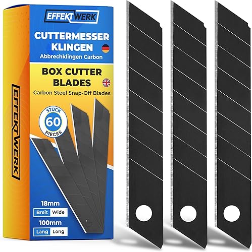 Effektwerk Cuttermesser-Klingen (Schwarz, 60er-Pack), 18-mm-Ersatzklingen für Allzweckmesser, robuste Abbrechklingen aus Karbonstahl