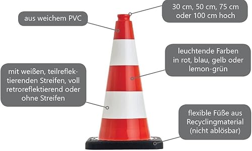 UvV-Shop grüne reflektierende Leitkegel 50 cm Pylone mit 2 reflex Streifen Standsicher mit ca. 2,2 kg, stapelbar