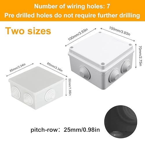 Jortmrd 4 Stück Abzweigdose Wasserdicht Anschlussdose Verteilerdose Aufputz ABS Gehäuse Steckerverschraubung Elektrische Box für Innen Außen Outdoor (85x85x50 mm, IP55, Weiß)