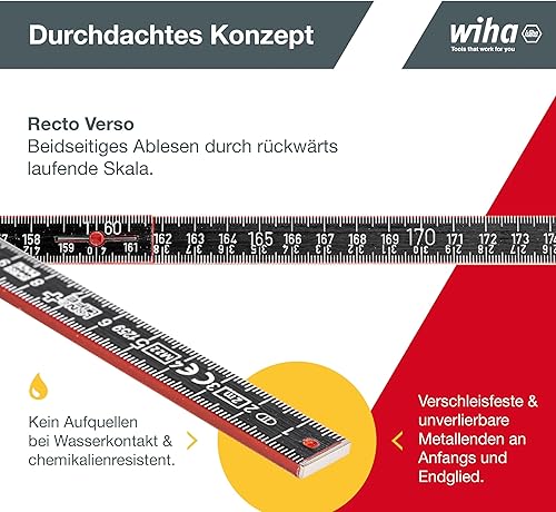 Wiha Meterstab Longlife® Plus Composite 2 m metrische Skala, (37067) 10 Glieder