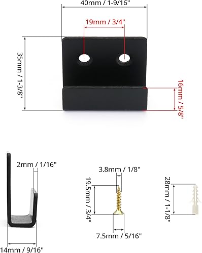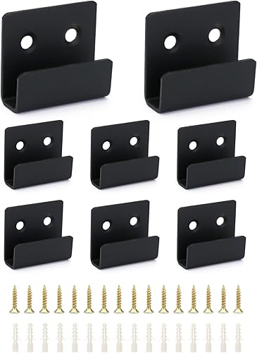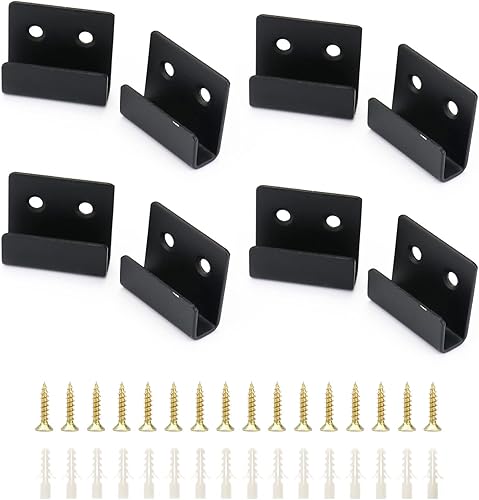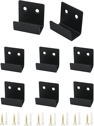 QWORK 8 Stück U Winkel Halterung Edelstahl, Schwerlast Keramikfliesen Display Wandhaken mit Schrauben, Schwarz, 16 mm Innenbreite