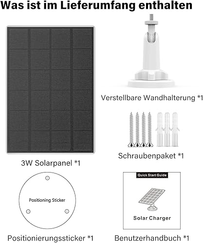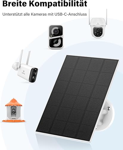 3W Solarpanel für Überwachungskamera, Kompatibel mit Allen USB-C Ports Cam, Solarpanel mit IP66 Wasserdicht, 9.8ft Kabel, 360° Verstellbare Halterung