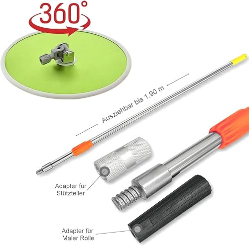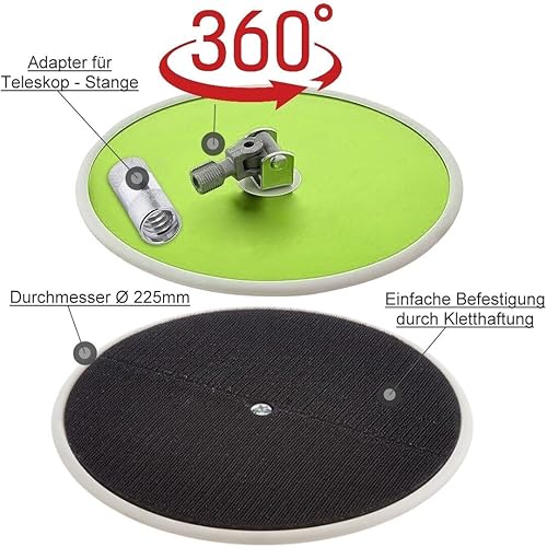Wand Deckenschleifer Handschleifer Schleifer Schleifteller Klett Stützteller mit Teleskopstange Stiel für Gipskarton Rigips Trockenbauschleifer Langhalsschleifer 225 mm