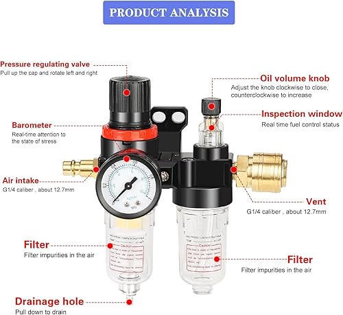 1/4 Zoll Druckluft Druckminderer Wasserabscheider Druckluft mit Manometer Ölabscheider Druckregler Zubehör für Kompressor