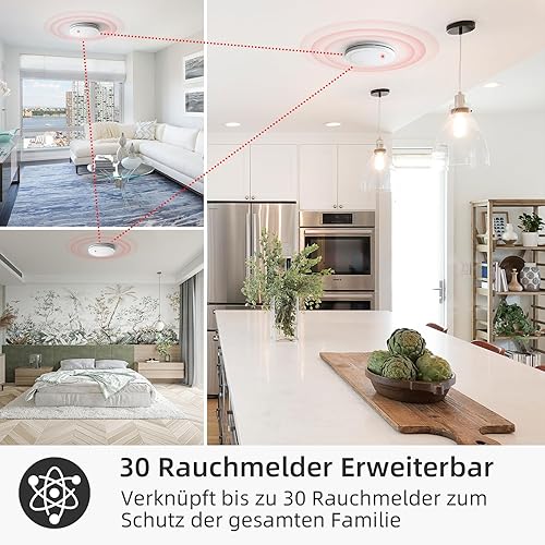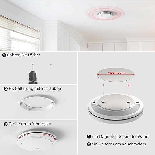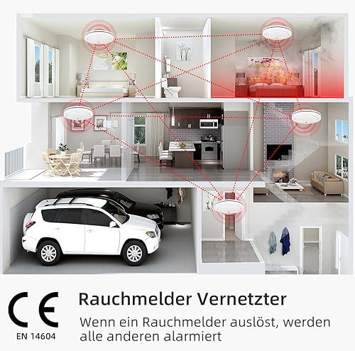 CPVAN Rauchmelder Vernetzt 10 Jahre Batterie mit Magnethalterung, EN14604 Geprüft Funk Feuermelder | Ohne Bohren, Europäischen Norm 85dB Rauchwarnmelder, 6er Set