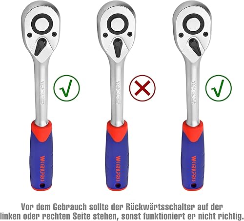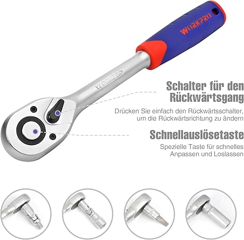 WORKPRO Steckschlüsselsatz 108-teilig, Knarrenkasten Ratschenkasten für Auto, mit 1/4' und 1/2' Umschaltknarre, Ratschen, Steckschlüssel, Bitsatz, Steckschlüsseleinsätze, Werkzeugkoffer