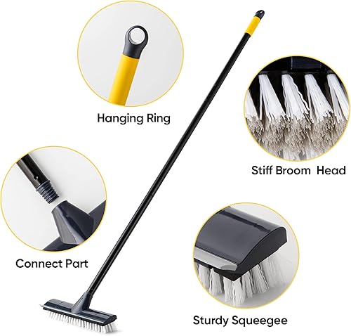 Yocada Bodenscheuerbürste, 127 cm Griff, 2-in-1-Schabbürste, steife Borsten, Duschschrubber für die Reinigung von Terrasse, Bad, Garage, Küche, Wand, Deck, Wanne, Fliesen