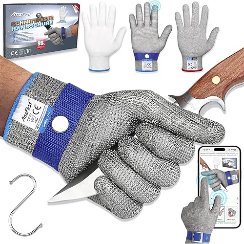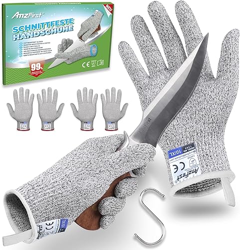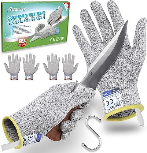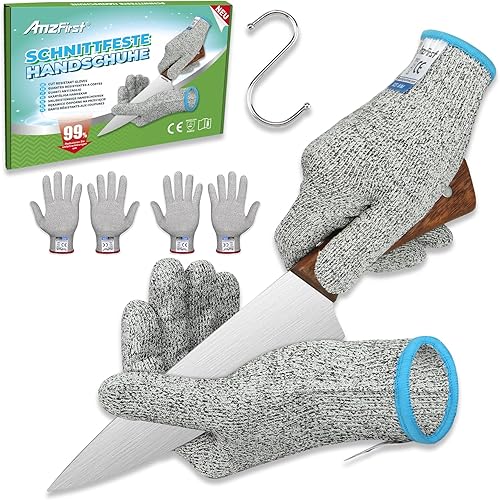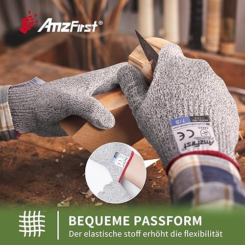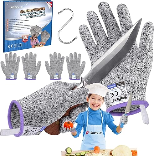 AmzFirst 2 Paar Level 5 Schnittschutzhandschuhe kinder 8 jahre, schnitzhandschuhe für kinder 7 jahre, lebensmittelecht, schnitthandschuhe küche 9 jahre, (Geeignet für 7-9 Jährige), Größe 5/XXS