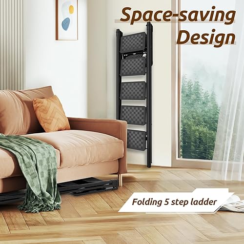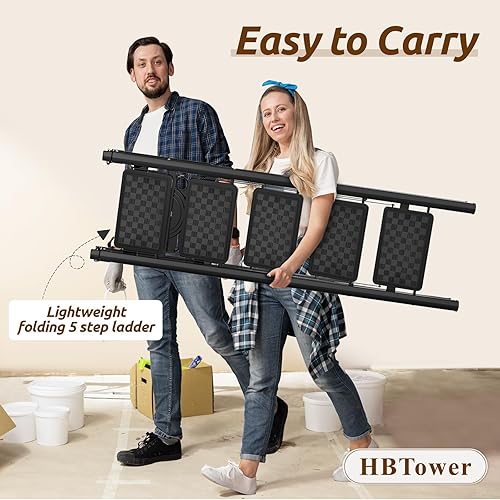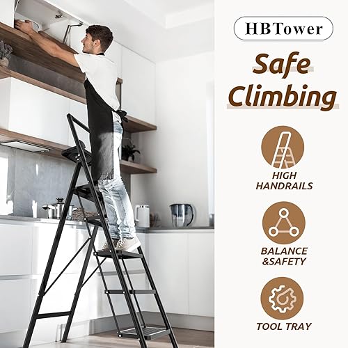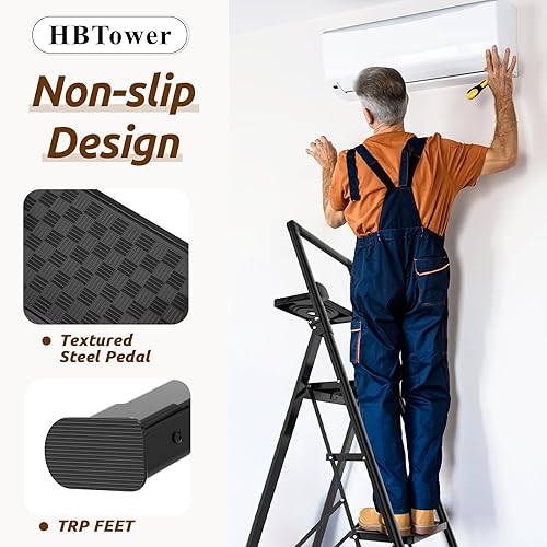 HBTower Trittleiter 2 Stufen Klappbar, Leiter mit breitem Anti-Rutsch-Pedal, Tritthocker mit 150kg Kapazität, Schwarz