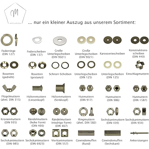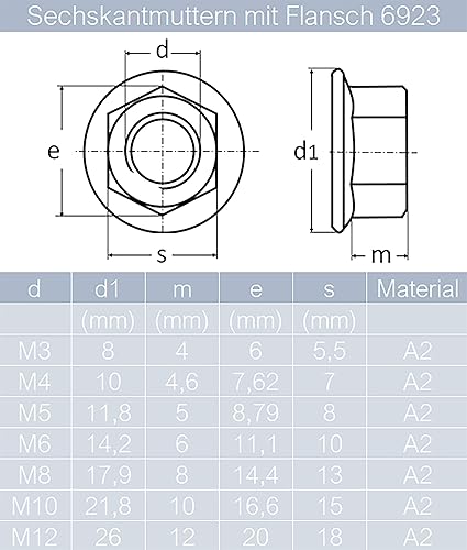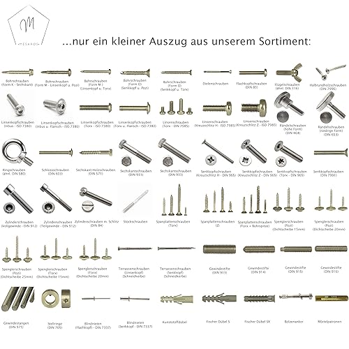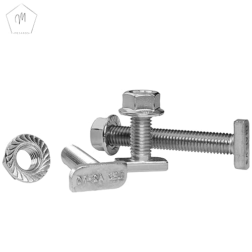 Hammerkopfschrauben M10x25 mm mit Flanschmuttern M10 aus Edelstahl A2 (10 Stück) | DIN 6923 - Ankerschienenschrauben - Sechskantmuttern mit Flansch von MESAROS®