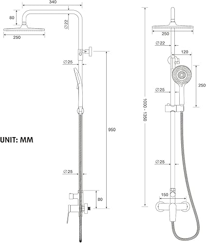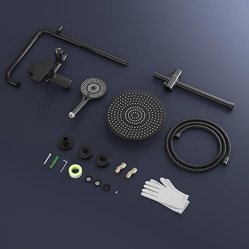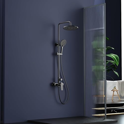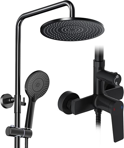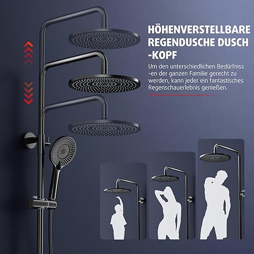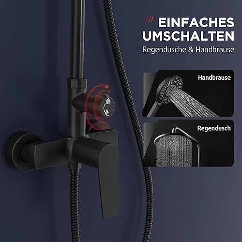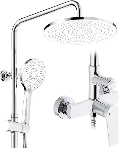 Rainsworth Duschsystem mit Armatur Chrom, Regendusche mit Armatur aus Messing, 25 cm Regendusche, 3 Strahlarten Duschkopf, Duscharmatur Komplettset, Duschset