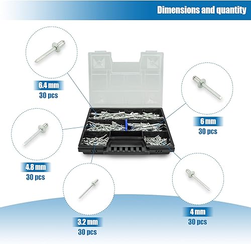 Blindnietzange Hebelnietzange Set Nietzange Poppnietzange 3,2-6,4mm inkl. 150 Alunieten im Sortimentskasten