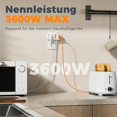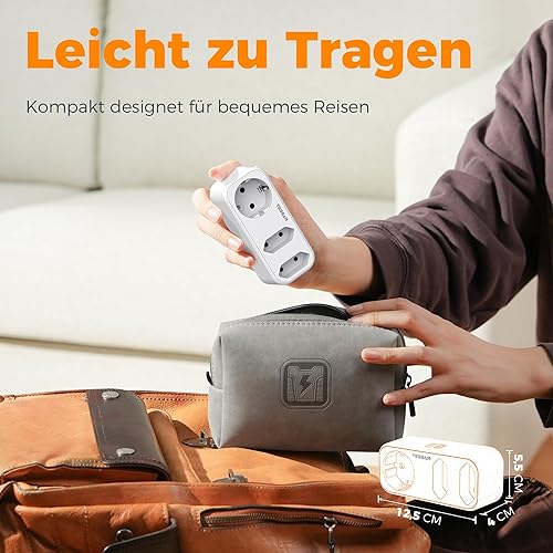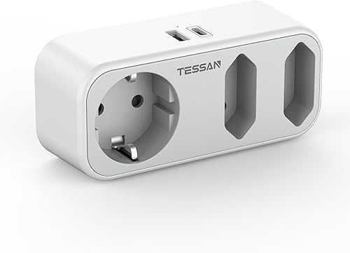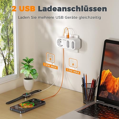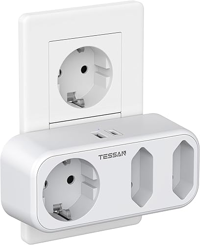 TESSAN Mehrfachstecker mit USB, Doppelstecker für Steckdose, Doppelsteckdose für Steckdose, 3 Fach Steckdosenadapter mit 2 USB 3600W, Mehrfachstecker Ladegerät Kompatibel mit Phone, Grau