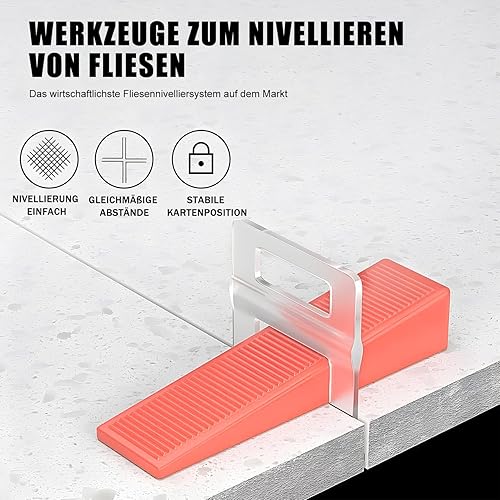 Fliesen Nivelliersystem 2mm Set - Fliesenverlegehilfe 2mm 400 Zuglaschen + 100 Fliesenkeile +1 Fliesenzange für Fugenbreite Fliesen Verlegehilfe (Fliesen nivelliersystem set 2mm)