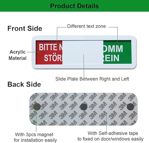 BITTE NICHT STÖREN - KOMM REIN Türschild 18 x 6 x 0.6cm aus Acryl-Kunststoff Privatsphäre Türschild mit 3M Klebefläche und Schiebefunktion Wendeschild - 1 Stück
