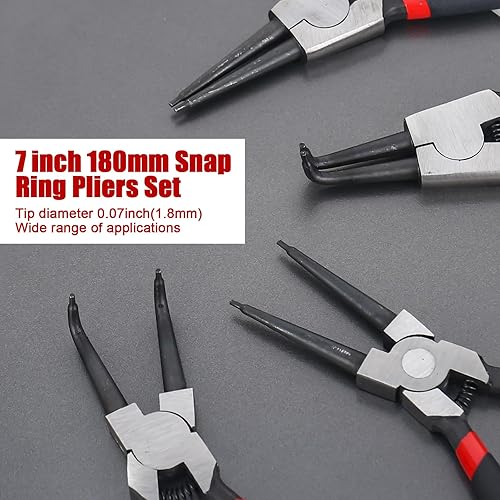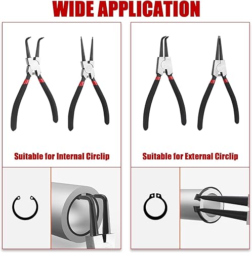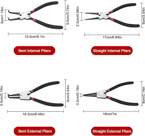 XTDMJ 4 Stück Sprengringzangen Set, 180mm Sprengringzangensatz mit Tragbarer Tasche Sicherungsringzange für Innen- und Außensicherungen, Gerade Und Gebogen Seegeringzange