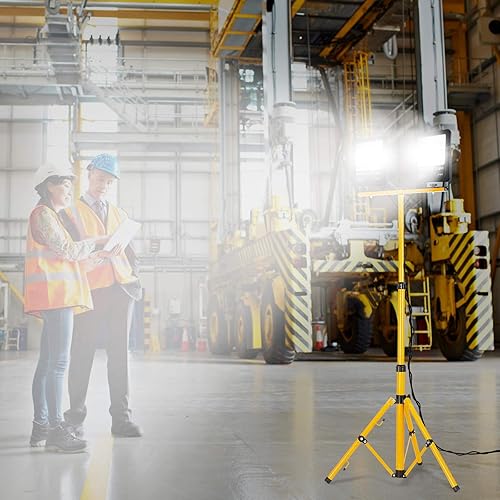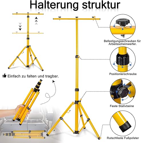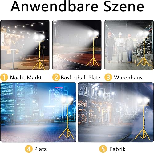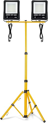 Froadp LED Baustrahler 2x100W Arbeitsstrahler LED Strahler mit Höhenverstellbar Tripod-Ständer IP66 Wasserdicht Fluter für Innen-und Außenbereich Baustelle Garage Garten Werkstatt (Kaltweiß)