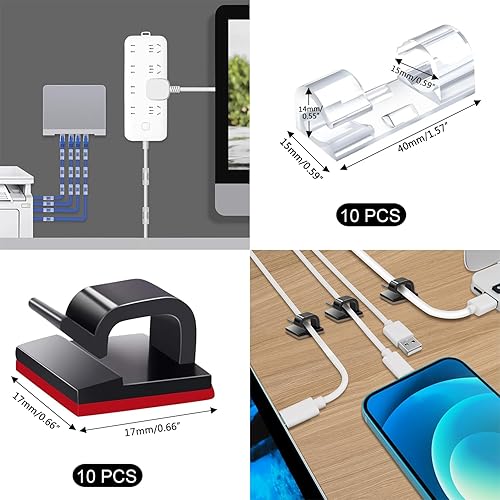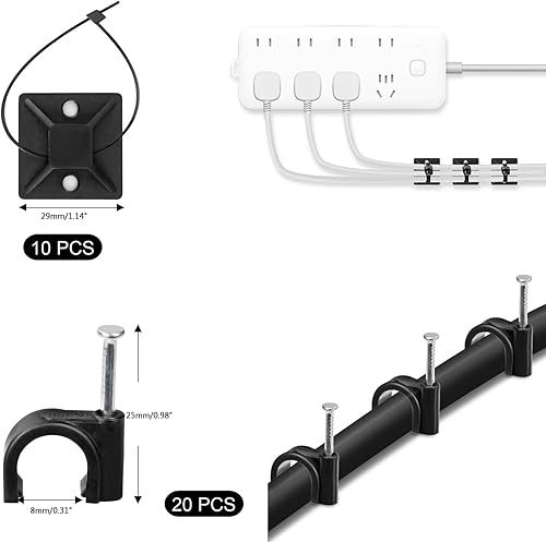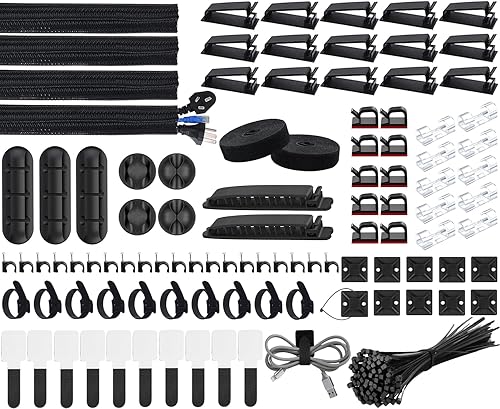 SOULWIT Kabelmanagement Kit, 4 Kabelschläuche, 7 Silikon Kabelhalter, 20+2 Kabelbinder Selbstklebend, 37 Kabelklemmen Groß, 100 Kabelbinder, 20 Kabelschelle Nagelschellen, 10 Klebesockel für TV PC