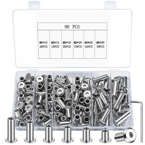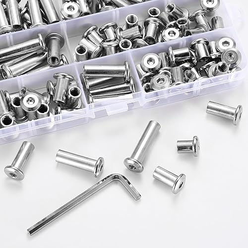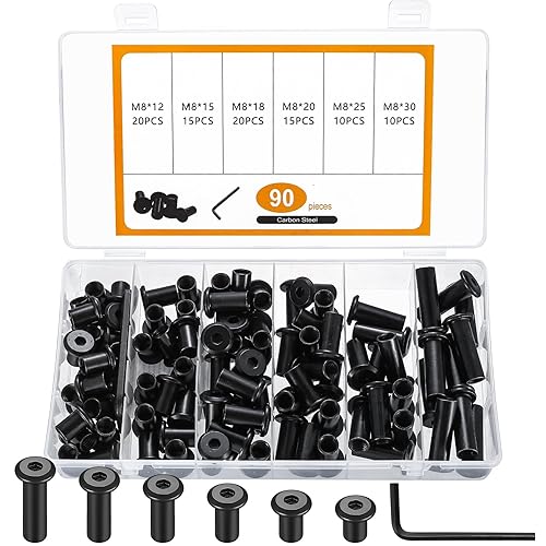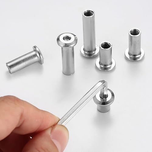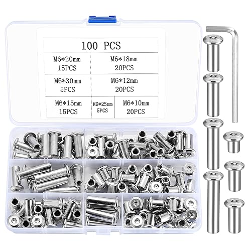 Hülsenmutter M6, 100 Stück Hülsenmuttern, Innensechskant Muttern, Möbel Sechskantmuttern zum Verbinden von Möbeln, Sofas, Stahl Vernickelt (M6 Schwarz)