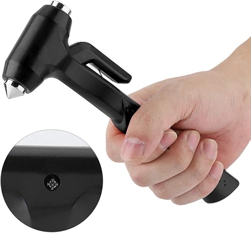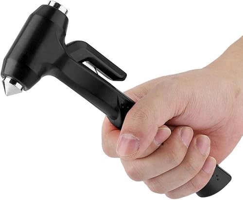 KSTE Auto-Sicherheits-Hammer Stahl Notausstiegsprogramm Werkzeug Gurtschneider Fenster-Unterbrecher (schwarz Large)