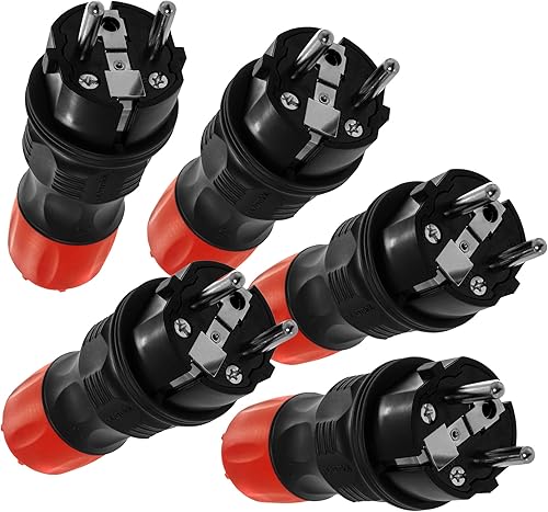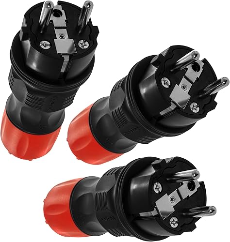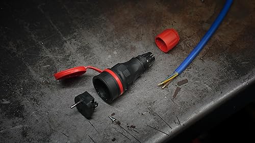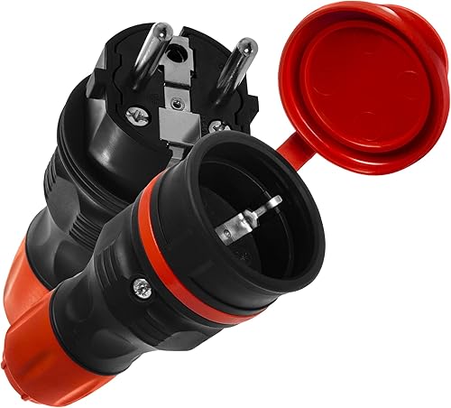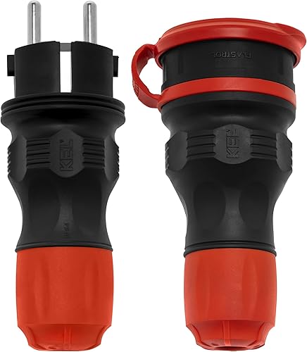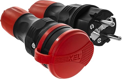 KEL Schutzkontakt Stecker & Kupplung Set 16A / 250V - IP44 Außenbereich, 3 Polig Gummi Schuko Stecker, Wasserdicht - Hermetischer Klappe