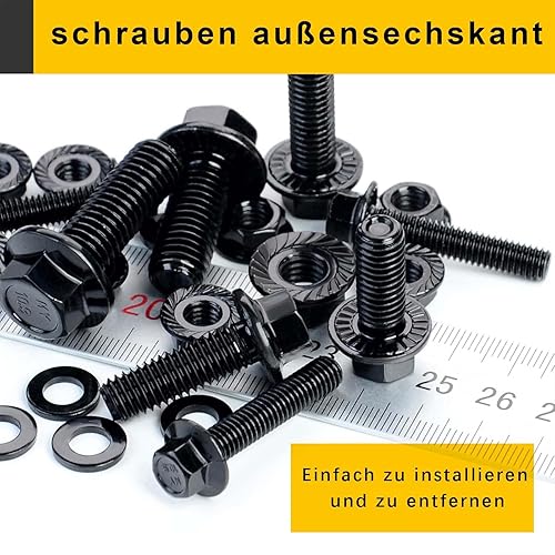 10 Stück M8x20 Sechskantschrauben, Flansch Schrauben, Edelstahl A2 V2A, Außensechskan, Vollgewinde, Unterlegscheiben, Federringe & Muttern/Schrauben-Sortiment mit Magnetischem Sechskant-Bit