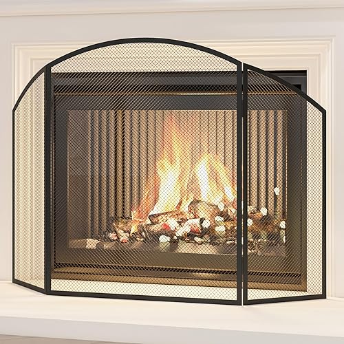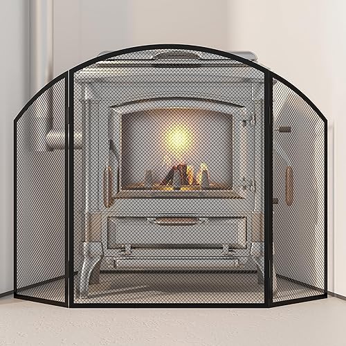 Kingson Schwarzer Kaminschutz, 96,5 x 61 cm, Feuerschutz für Holzbrenner und Holzbrenner, Baby-Sicherheitskaminschutz, Kamingitter für offenes Feuer