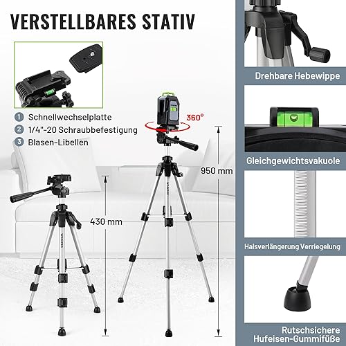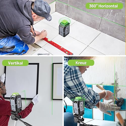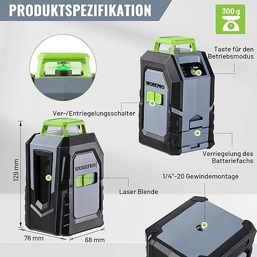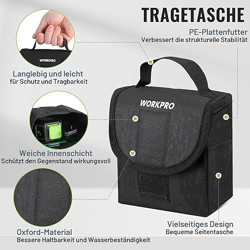 WORKPRO 360° Laserwasserwaage mit Stativ, 30 m Grüner Kreuzlinienlaser, Horizontal/Vertikal/Kreuzlinien-Modus, Auto-Nivellierung, Ideal für Baustellen, Decken-, Fliesen- und Dekorationsarbeiten