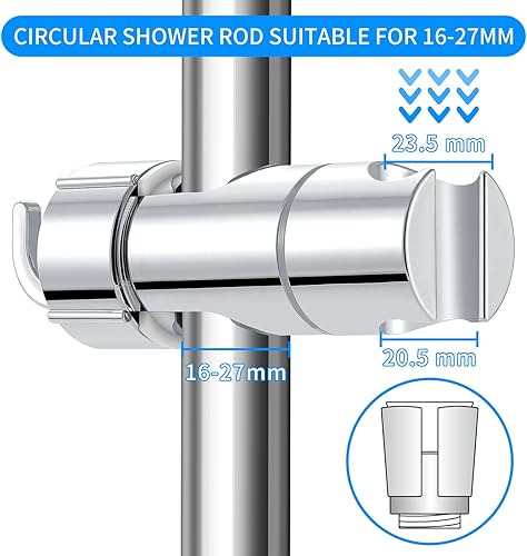 Joyoldelf Universal Handbrause Halterung,16-27 mm Verstellbar Brausehalter Duschhalterung, Duschkopf Für Badezimmer, ABS Verchromt Duschkopf Halterungen, 360° drehbar