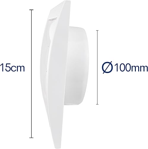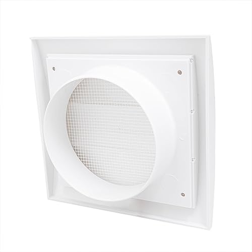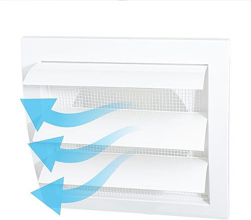 Systerm Lüftungsgitter 100mm Weiß, Verschließbares Lüftungsgitter mit beweglichen Lamellen und Insektennetz, Ideal für Dunstabzug Außenabdeckung. Korrosionsbeständiges Außengitter