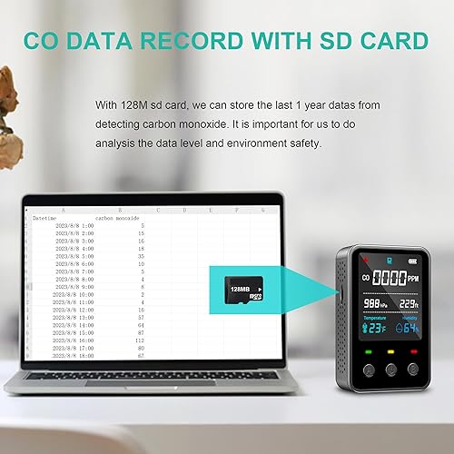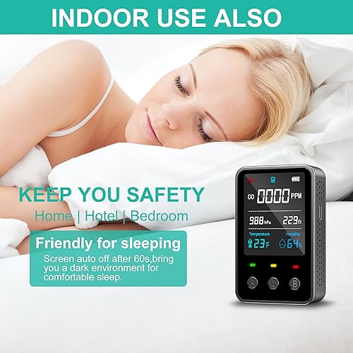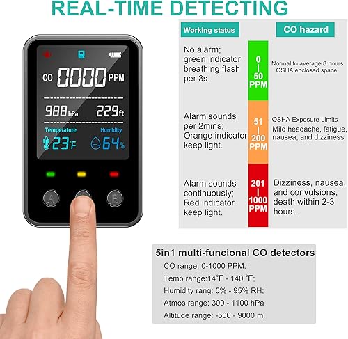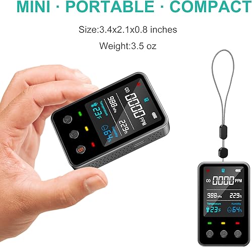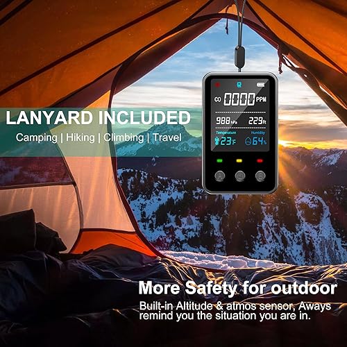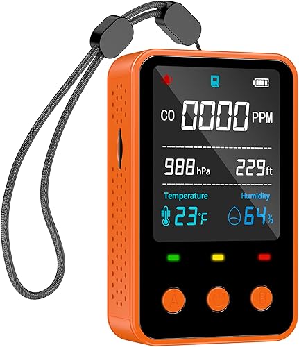 Gedsffati Tragbarer CO-Melder Kohlenmonoxidmelder, Mobiler CO-Warner Warnmelder CO-Messgerät mit Luftdruck- & Meereshöhe- & Temperatur- & Luftfeuchtigkeitsmessungen, für Camping Reise Auto, Orange