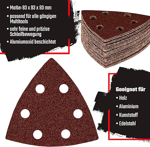 Delta-Schleifdreiecke │ 50 Stück │ 6-Loch │ 93 x 93 x 93 mm │ Korn 40 │ für Deltaschleifer │ Schleifblätter │ dreieckige Schleifpads │ Schleifpapier