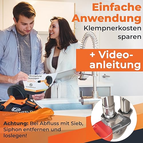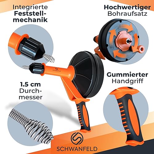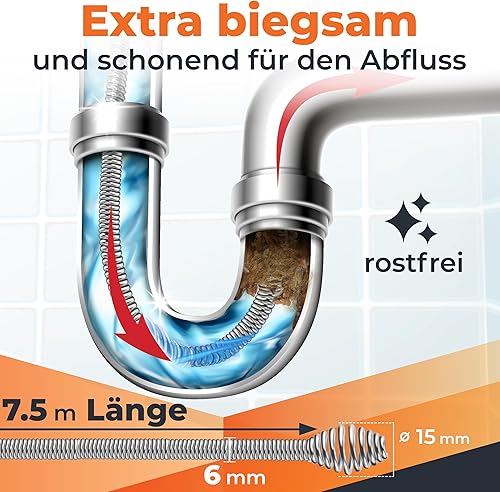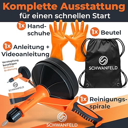 Schwanfeld® [7,5 m] Rohrreinigungsspirale [EINFACHE ANWENDUNG FÜR JEDERMANN] - inkl. wasserfeste Handschuhe - hochwertige Abflussspirale - Spirale Abfluss Rohrreinigung - Abflussreiniger Spirale