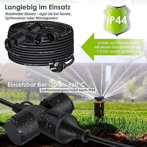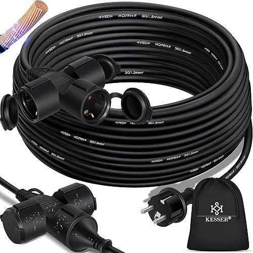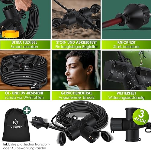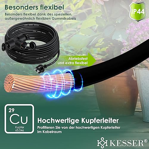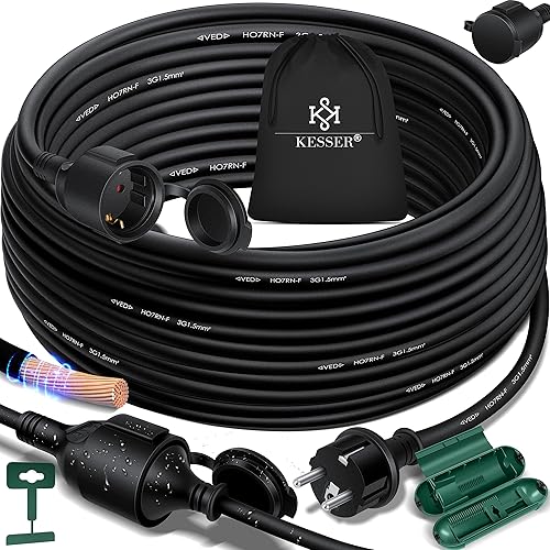 KESSER® Verlängerungskabel 50m mit Schutzkappe Outdoor - für Innenbereich Außenbereich - Verlängerung Stromkabel – 230 V IP44 - mit Schuko Stecker - Schutzkontakt Baustellenkabel Schutzkontaktstecker